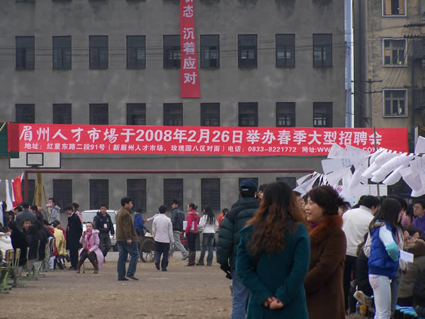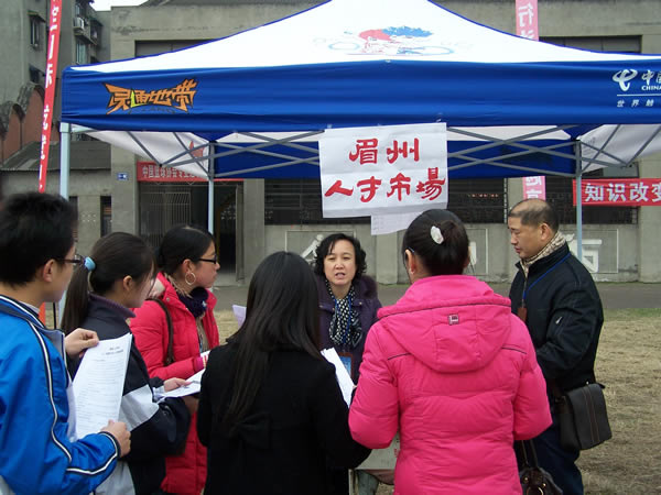 2007年12月31日上午10時,眉州人才市場與眉山職業(yè)技術(shù)學(xué)院聯(lián)合舉辦的“2008屆畢業(yè)生雙選會”隆重開幕,此次盛會是眉州人才市場與眉山職業(yè)技術(shù)學(xué)院為解決應(yīng)屆畢業(yè)生就業(yè)的重大舉措,推進了該校畢業(yè)生就業(yè)工作,促進畢業(yè)生充分就業(yè),為用人單位和畢業(yè)生提供一個雙向選擇的平臺,此次盛會有近150家招聘單位蒞臨招聘,2000余名求職者到會求職。